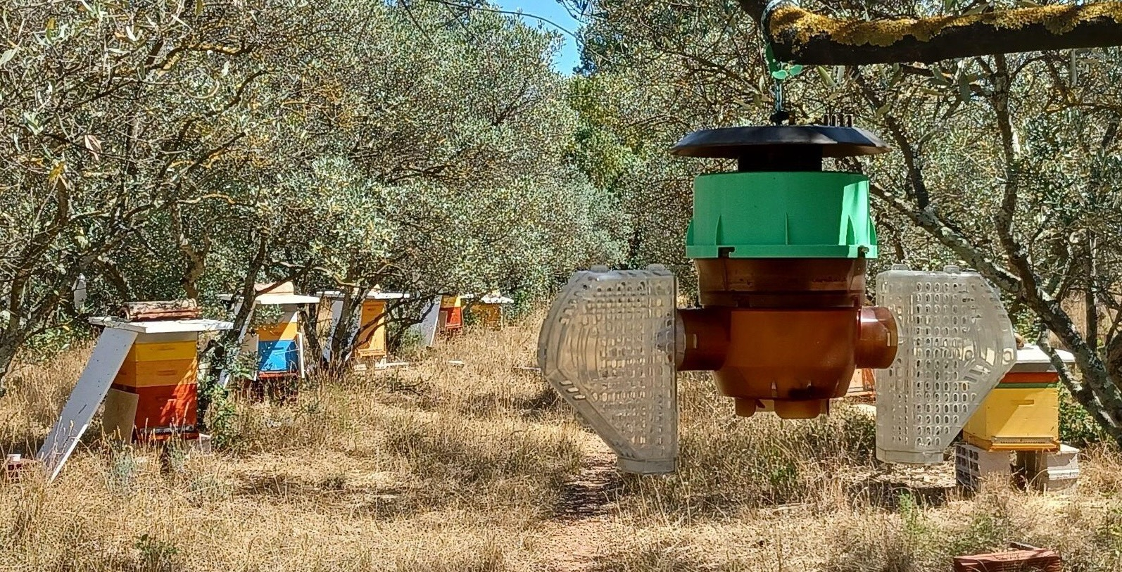 Aussi, pour vous apiculteurs, protégez vos colonies d'abeilles. Les frelons attirés par l'attractif suivent la lumière dans le piège et restent dans les récipients de collecte.
