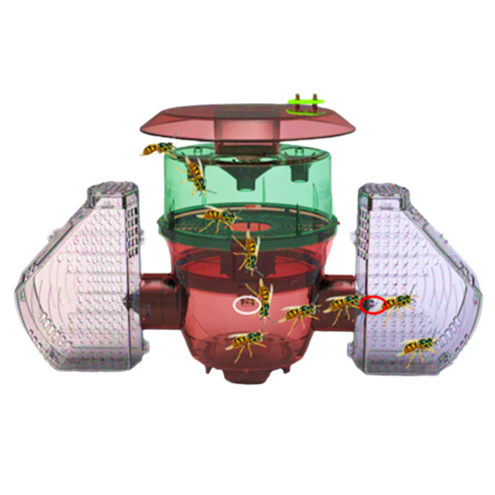 Le piège est vendu avec 4 réducteurs à installer dans le piège (sur les 4 entrées du piège). À installer seulement à l’arrivée du frelons européens. Étant plus gros, il ne passera pas dans le piège contrairement au Frelons asiatiques.